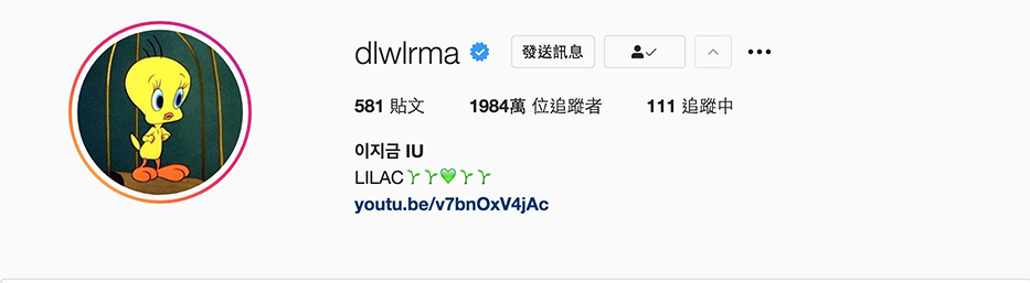 IU的本名为李知恩(이지은),而「恩」与「银」同字(은),但「金」又比「银」好,加上「知金(지금)」在韩文里有「现在」的意思,名称就变成了「李知金(이지금)」,在键盘上打的顺序就是「dlwlrma」,是个相当复杂但有巧思的ID呢。