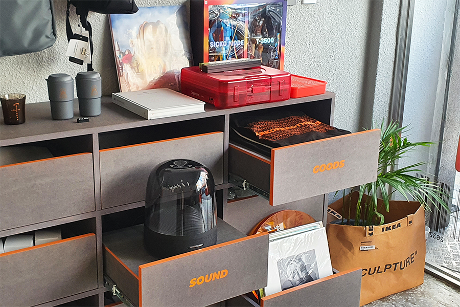 虽然家具、墙壁、地板大多是低调的灰色系,但从一些亮眼的摆设,增加视觉上的印象,也让人忍不住感叹Arkofbrothers老板的Sense。