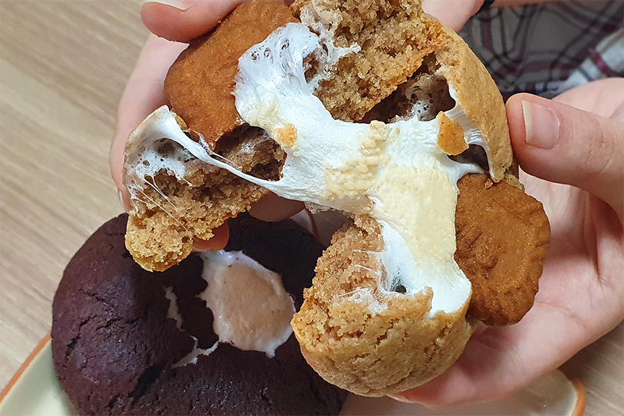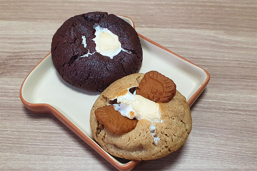 这款是中间包著棉花糖的软饼干曲奇,全部都是Arkofbrothers的老板亲手烤的呢。小编平常就很喜欢吃饼干,所以就点了Lotus口味试试,吃了一口,就发现这也太好吃了吧 所以离开前还多买了巧克力跟Lotus口味带回家吃了呢。