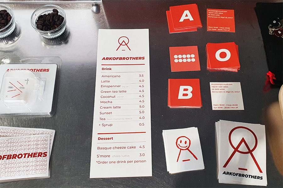 永登浦咖啡厅「Arkofbrothers」同时贩售各式各样的周边商品,像是保温杯、包包、T恤、蓝牙耳机壳等等,都可以在这里找到。