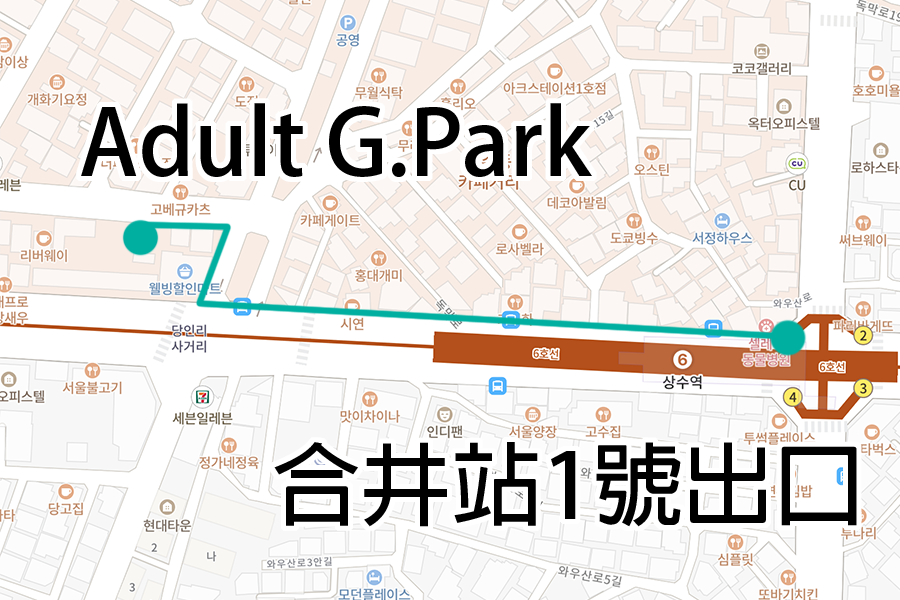 - 交通:首尔地铁6号线合井站(합정역)1号出口步行约5分钟即可抵达。