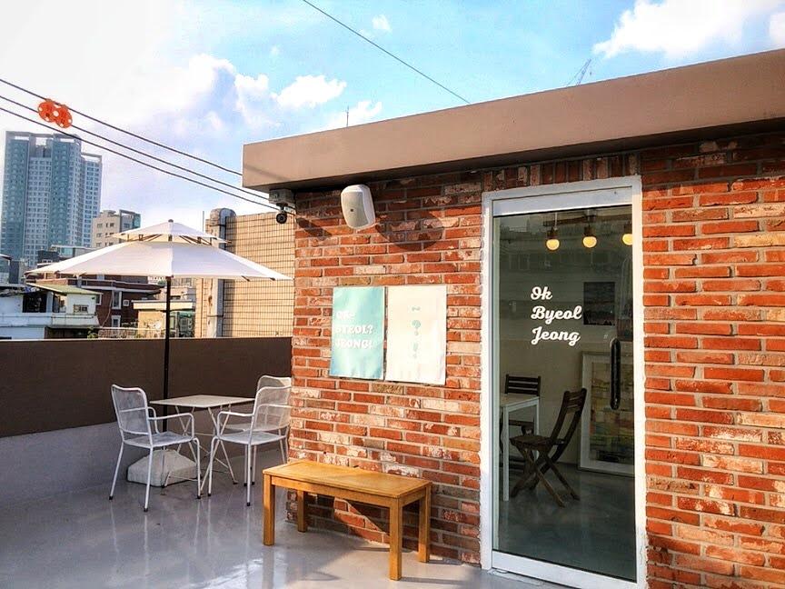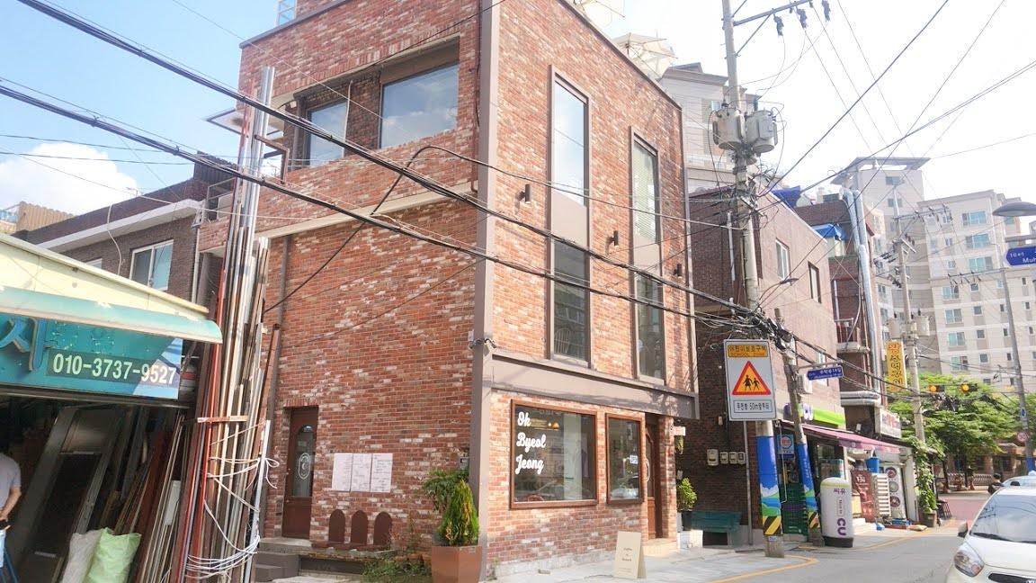 位于2号线往十里站(왕십리역)与上往十里站(상왕십리역)中间的「Ok, Byeol? Jeong!」咖啡厅,含顶楼露天坐位区,一共有四层楼,用红砖砌成的外墙,在老旧的小社区里显得格外引人注目。