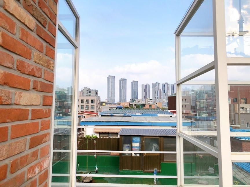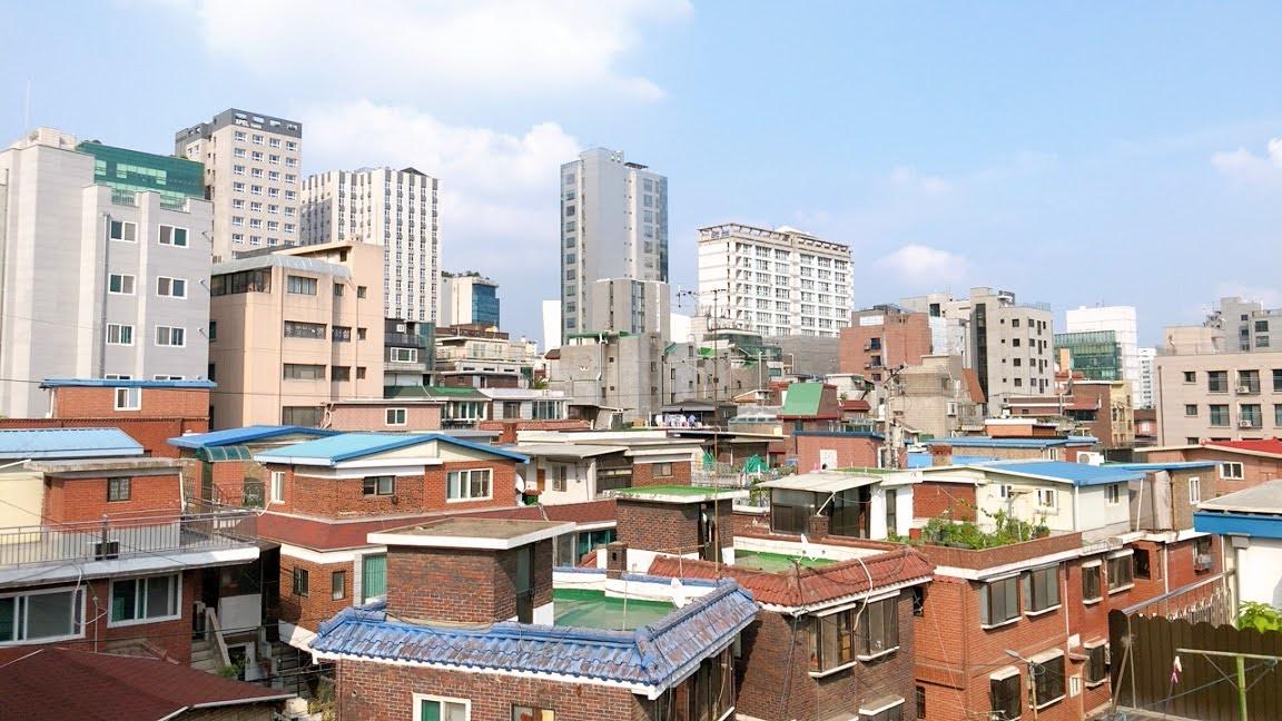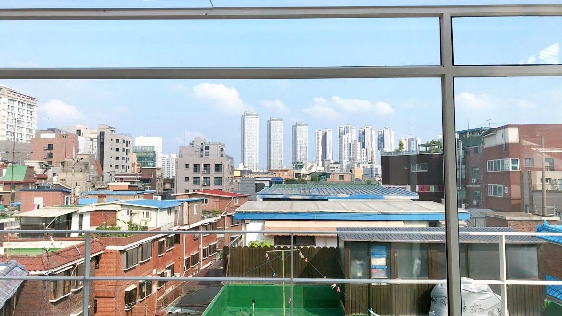 从这个角度看,刚好可以看到首尔市景中,老旧社区与新建大楼共存的风景。