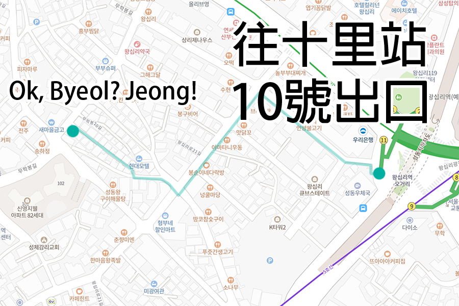 提到往十里,只会想到烤肠一条街吗?靠近学区的往十里站,除了有欧风的购物商场ENTER6之外,近年来附近也多了许多小店、异国餐厅、咖啡厅等等,今天就让小编带大家走访这间位于往十里巷弄的「Ok, Byeol? Jeong!」咖啡厅。