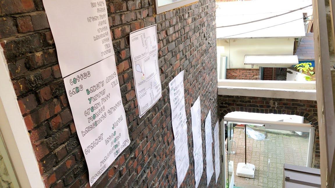 阶梯旁的墙面上挂满店家亲手绘制的海报,大家有发现了吗?这家店的店名「Ok, Byeol? Jeong!」」,居然是取自店内每一个商品英文名字中的一个字,再拼凑而成的。