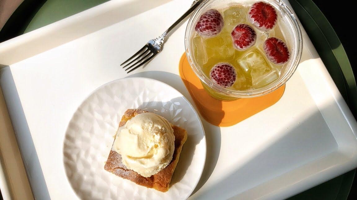 参观完咖啡厅的装潢之后,小编回到座位上享用餐点,店内的甜点可以额外加点冰淇淋在上面。