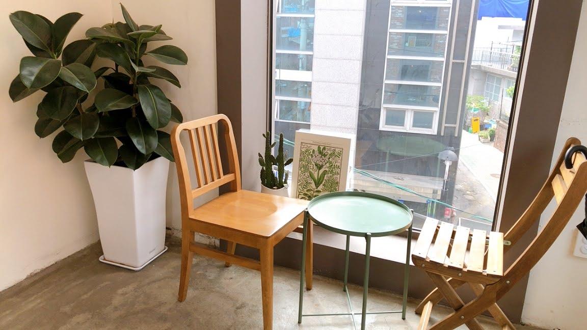 再往顶楼走是露天座位,室外共有两个团体座位,室内则有一个三人座位,和可以欣赏风景的长椅。