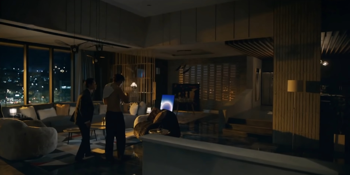 作为巴别集团幕后老大的张俊宇,住在非常豪华的房子里,宽阔的房间里摆放著许多豪华家具,从窗户还可以一览首尔夜景,这也象征了他所拥有的财富和权力的地位。