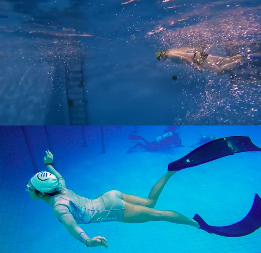 后来再跟著教练的指示,一步一步来,就可以在深水中自由游动。由于小编没有太多的深水游泳经验,所以一开始有点害怕,但后来就能发现自己已经习惯水中的世界,并潜入了深水区域,成为了夏季海滩和游泳池的主角。