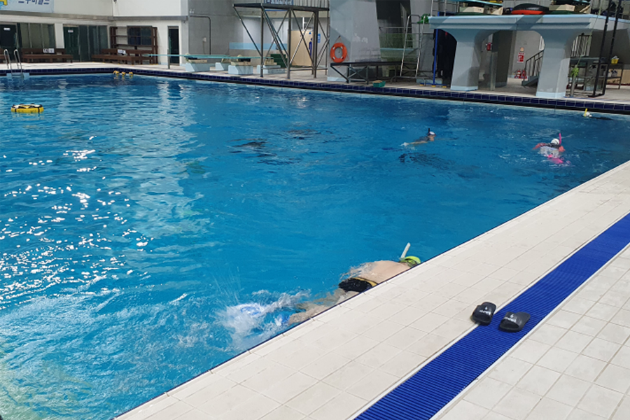 不仅如此,教练会用水下相机拍摄大家在水中游泳的影片和照片,让大家留下美好的回忆。之后来大邱,也来头流游泳池体验新奇的自由潜水吧。
