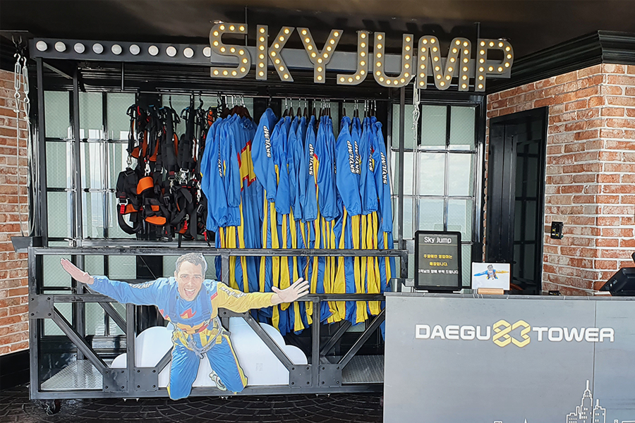 大家应该都听过大邱的83塔吧?高达202米的巨大塔楼,可以说是大邱的地标与中心,而83塔上的高空弹跳「Sky Jump」,是韩国最高的高空弹跳,入口位于大邱83塔一楼,进去后直接到4楼的售票亭即可。