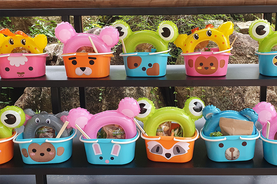 篮子和头饰位于售票处的右侧,可以花₩5,000购买,篮子里装有动物喂食饲料及工具,可以拿著这个篮子去喂可爱动物。