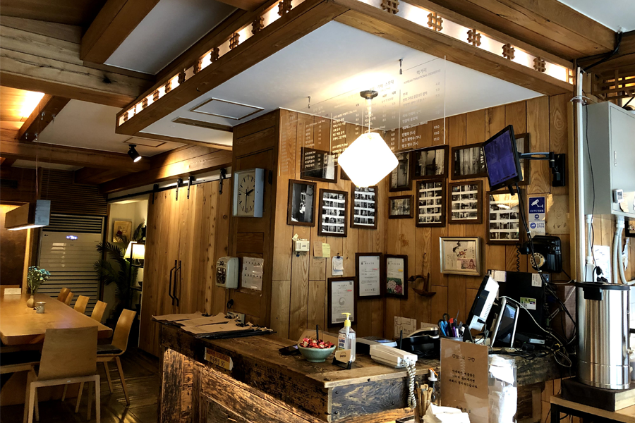 收银台后方的照片上,记录著「韩屋茶馆」的兴建样貌,也挂著许多证照,看著照片也让人不禁赞叹一家店的兴建过程。