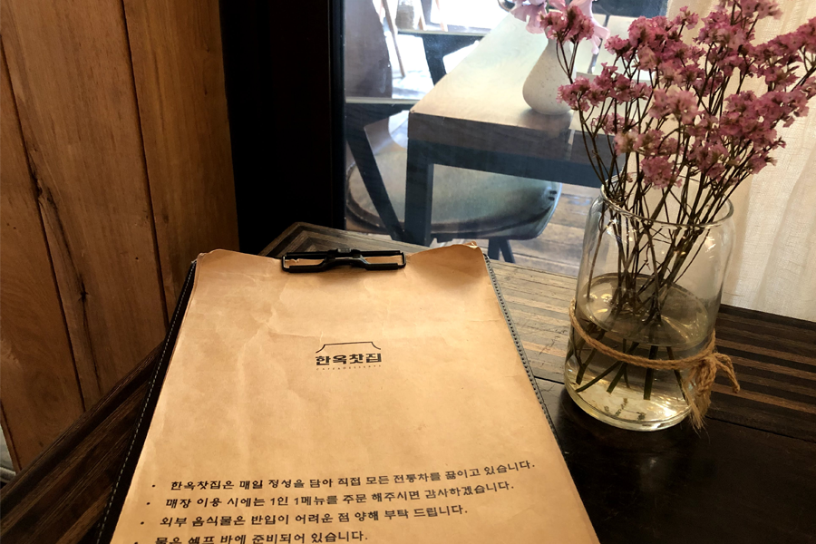 菜单是用年皮纸材质撰写的,店内除了提供经典的大枣茶、柚子茶、木瓜茶等韩式传统茶之外,也有咖啡、冰品或韩式糕点等餐点可以品尝。