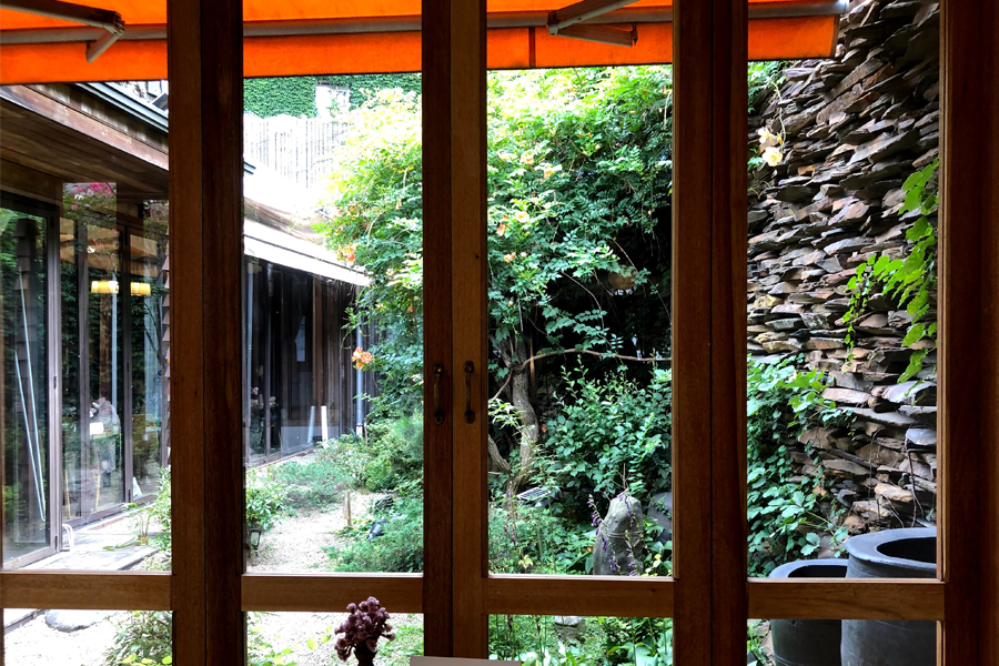 进入座位区之前,可以先从一旁的窗口看到中间的小庭院也有座位,只是因为当天天气很热,所以客人们选择在室内避暑。