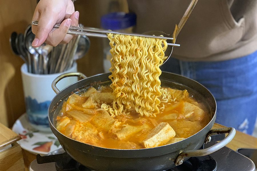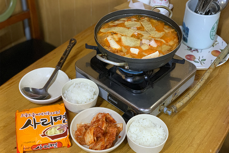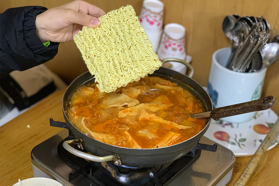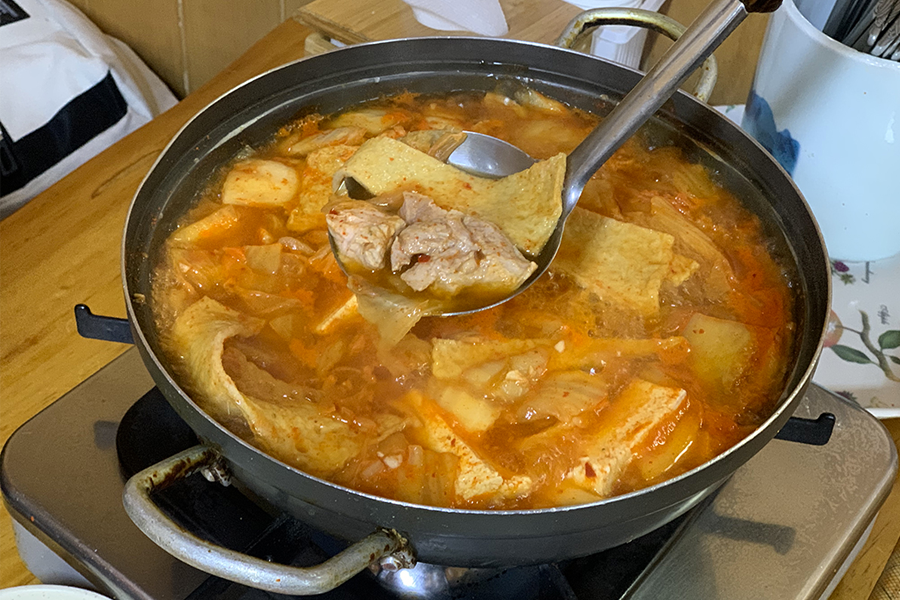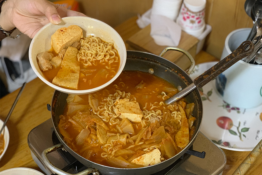 煮熟的泡面吸满汤汁,让人回味无穷,辣得刚好的汤头配上微酸的泡菜口感,是小编至今仍想念的味道。捞起一块配料再搭配白饭下肚,浓郁的味道直冲脑门,巴不得立刻三两口把整锅扫完。