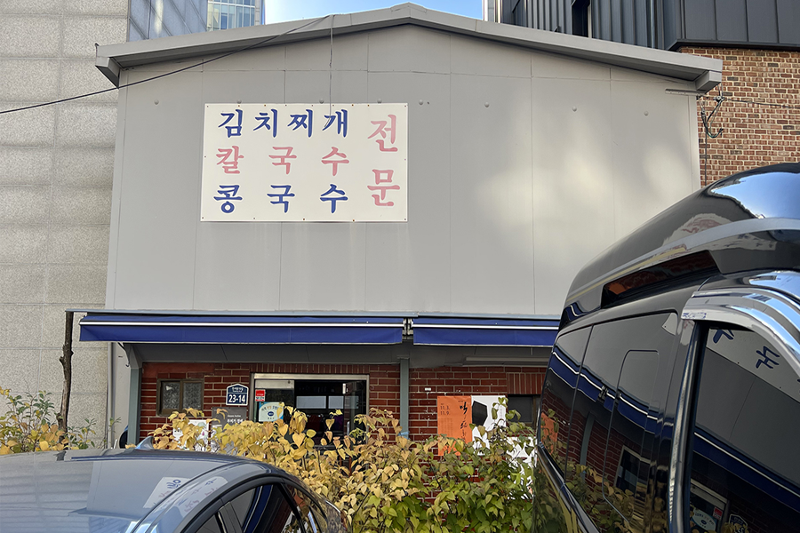 而实际上,店面确实如店名那样,真的没有招牌,只有简单的韩文字样挂在外头铁皮,非常简陋。不过小编在前去的路上,也搜寻过了许多资料,「没招牌的泡菜锅店」在周边上班族中人气真的超级高,如果是平日用餐时段造访,可能需要排队等候。