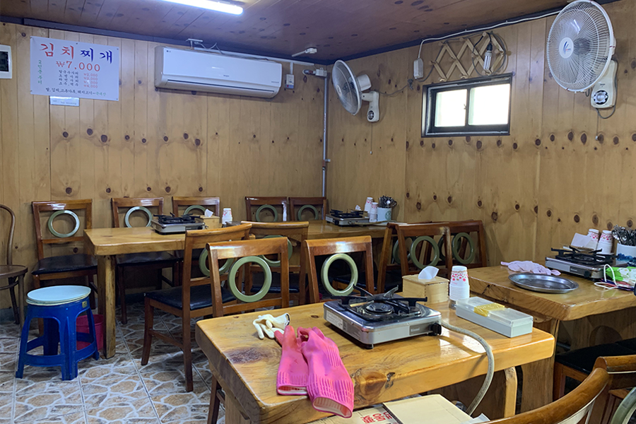 进入仁寺洞「没招牌的泡菜锅店」店内,就更有那种老店感,装潢简朴而不舖张。据说至今为止,虽然已经经营到第二代,也仍保有著店家最初的样貌。