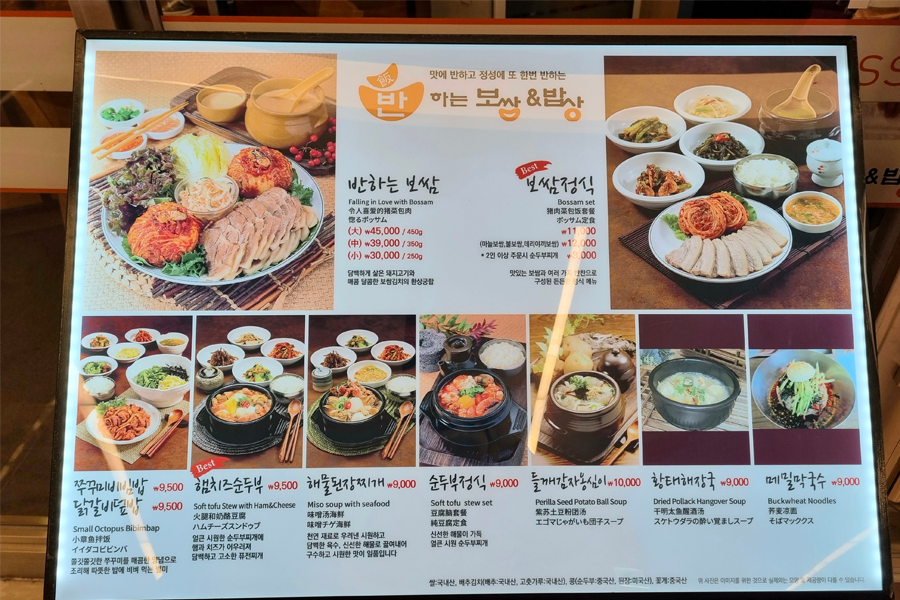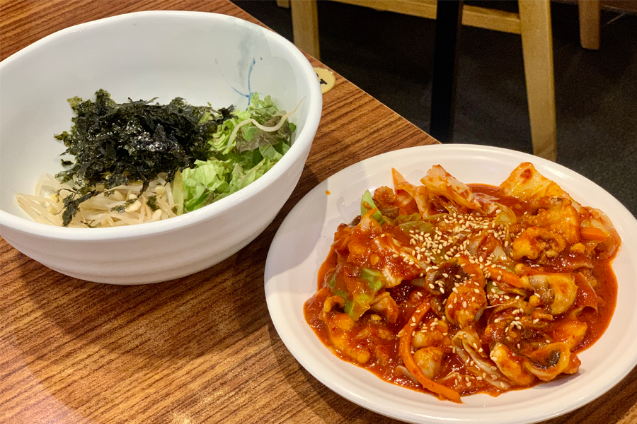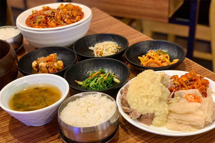 小编最后挑选了美食广场中,一间可以品尝到各种韩国美食的「Banhanun包饭和定食」,从嫩豆腐锅、包饭定食、海鲜锅等等都有,而小编点了猪肉菜包饭定食、小章鱼拌饭。