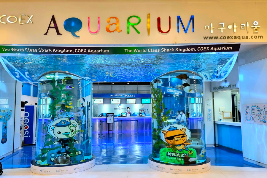 COEX也有水族馆,规模虽然不大,但应有尽有,是亲子同游COEX时一定要加入的行程,逛起来非常悠闲,除了寓教于乐,还能一窥16个主题区,650种、4万多只水生动物组成的水中王国,尤其是鲨鱼的数量,COEX水族馆可是全韩之冠。