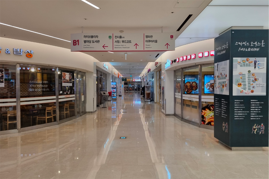 COEX其实是个大型建筑,作为购物中心、展览、商办空间等等,而主要大家去的COEX购物区域为其中的「Starfield COEX Mall店」,在地下1楼,其他如美食、电影院、水族馆、星空图书馆等等,也都在这周遭的空间里。