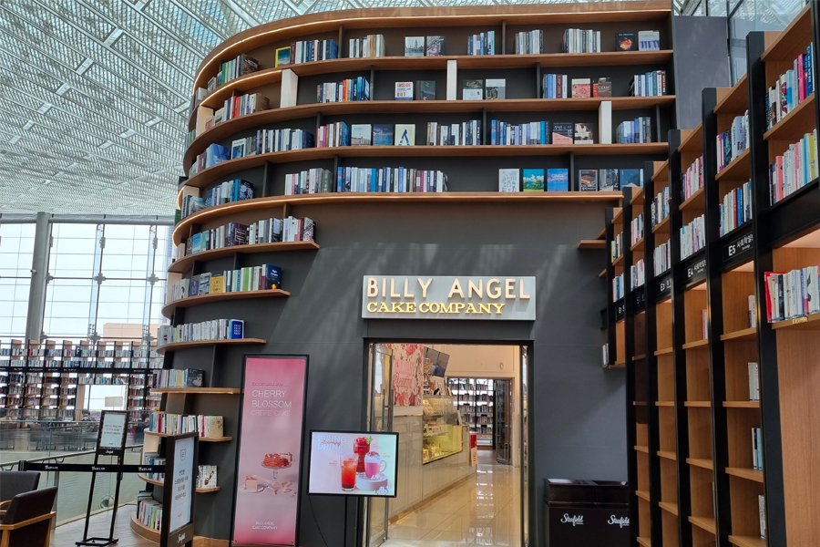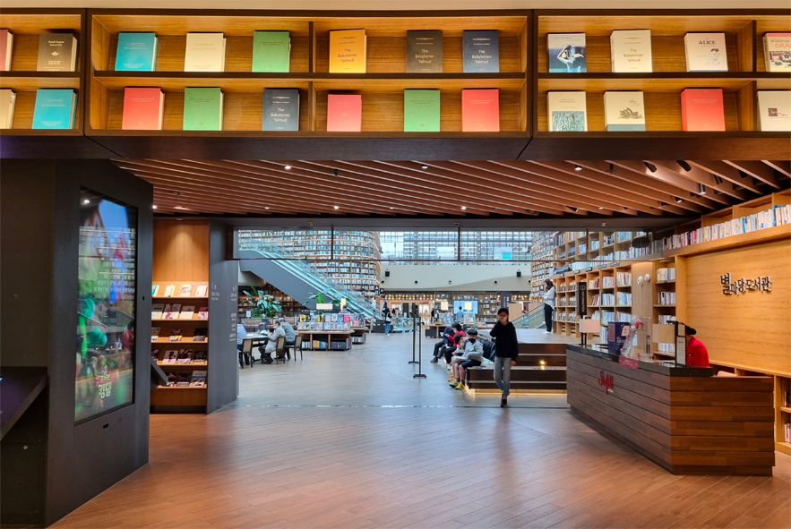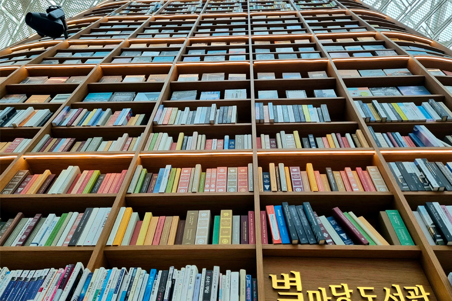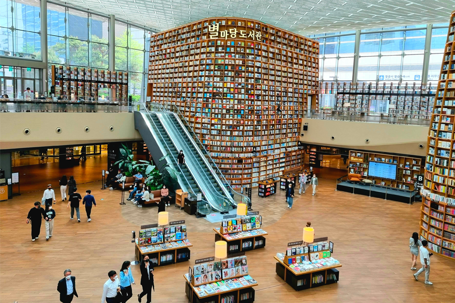 而COEX内部最知名的景点,就是所有人都熟知的「星空图书馆」,从地铁站一路往COEX方向走,地上都会有蓝色指标,非常好找。