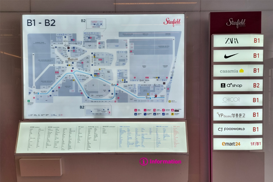 也由于COEX的规模实在太大,大家可以参考沿路可见的电子看板,上头都有指标(且有外语说明),如果真的有问题的话,也可以询问COEX的工作人员寻求协助。