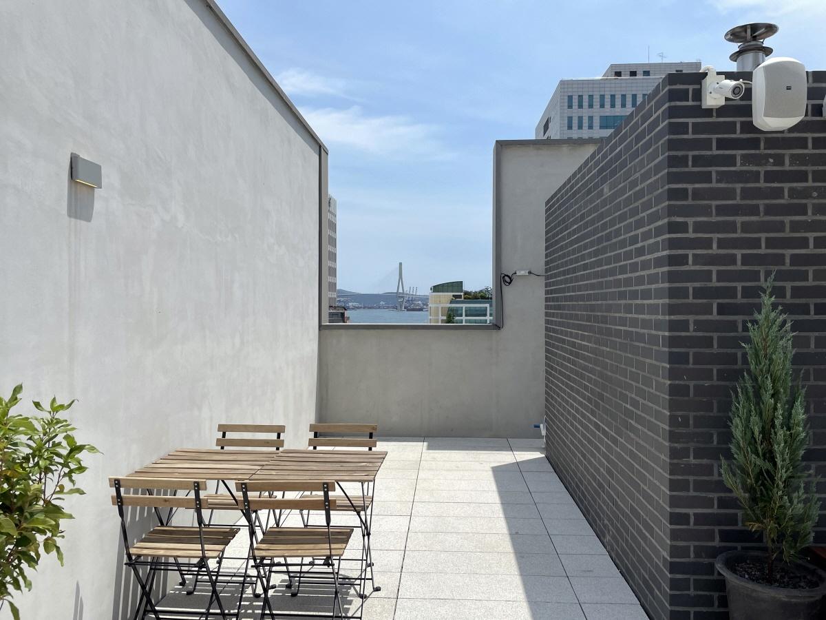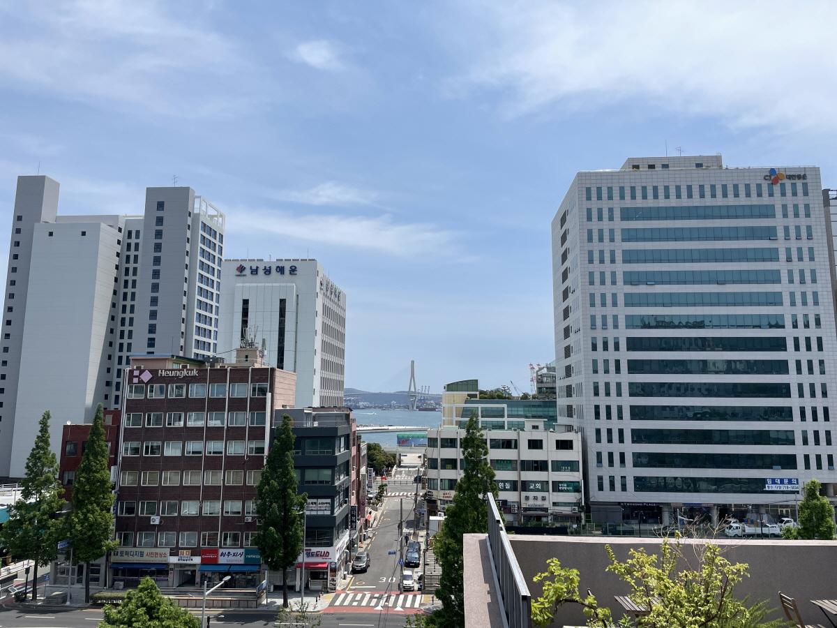 空间比想像中的还要宽敞,著实意外,而且也有摆放桌子,可以在这喝杯咖啡、稍微休息,更能透过较高的视角欣赏周边风景,还能眺望釜山塔和釜山大桥。