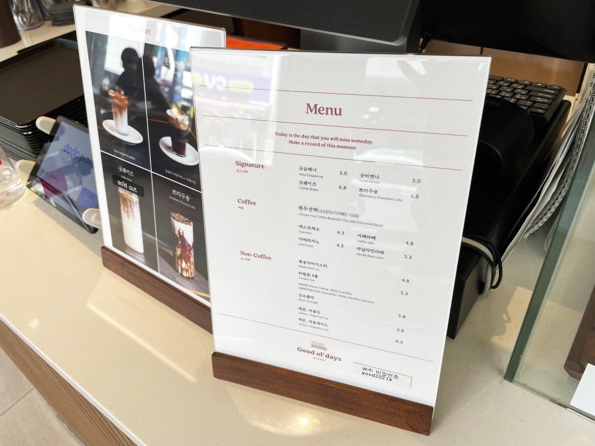 Good ol'days的所有甜品都是由烘焙团队每天清晨精心制作的,价格约₩3,000至₩4,000不等,为了让甜点保持在最佳风味,都是保证当天制作、贩售,绝不放到隔夜。