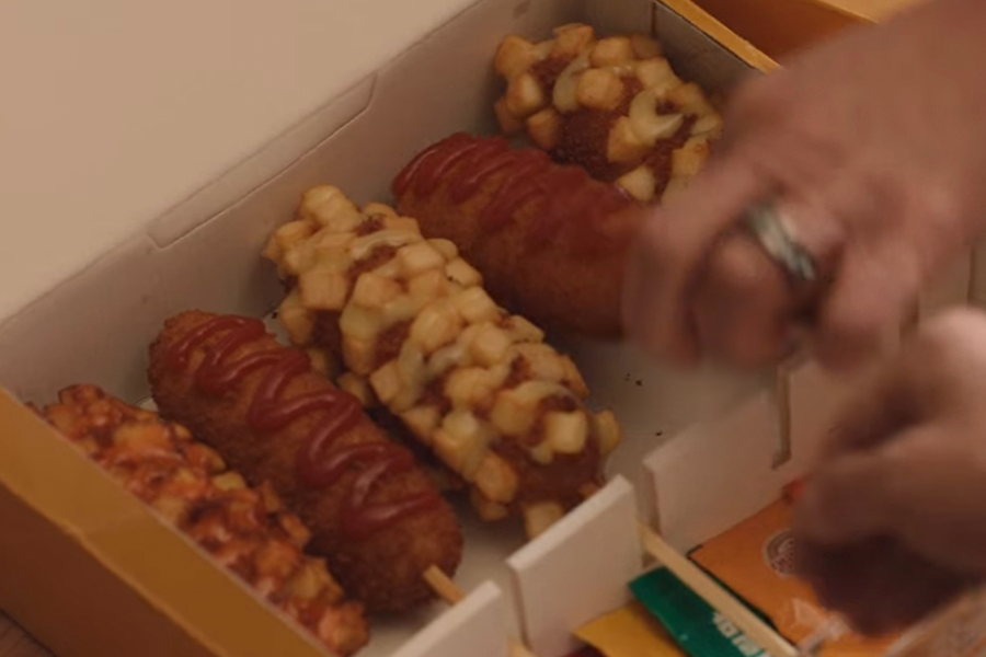 OCN于韩剧《驱魔面馆》最后一集中,出现了不少置入性广告,其中令人印象深刻的,就是这样大家一起分享的美味热狗套餐「明朗热狗」,可是相当诱惑电视机前的观众啊。