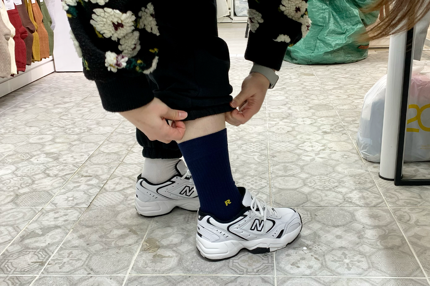 从门口就可以看到袜子的样式非常多样,袜子是时尚穿搭的完成单品大家都知道吧!