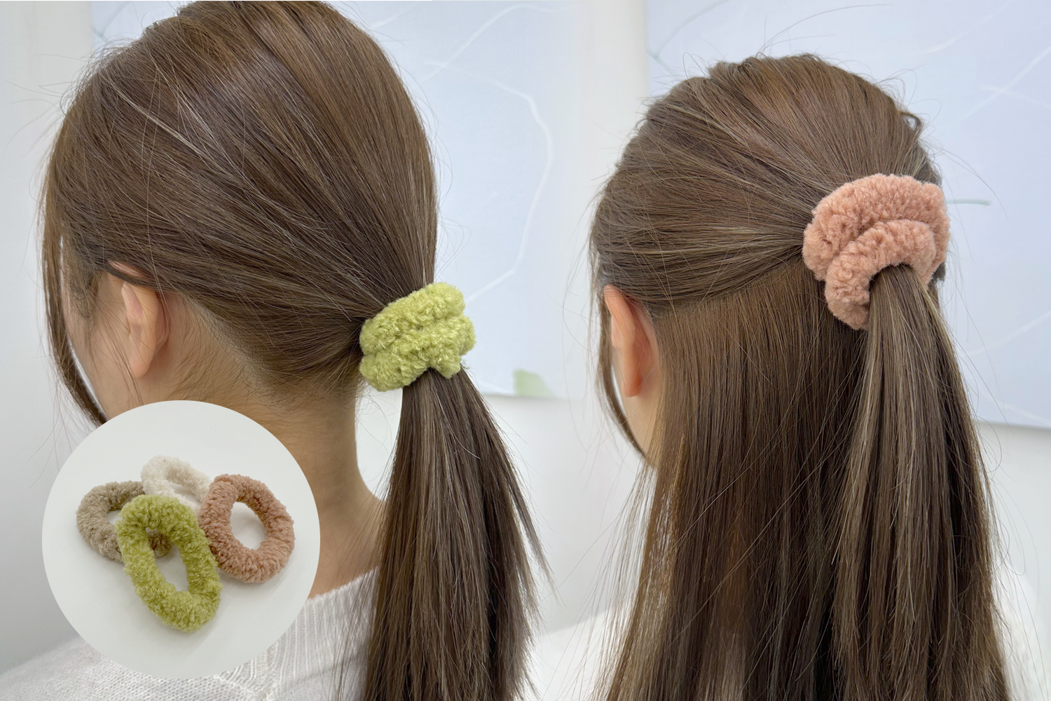 最近韩国很流行羊羔毛的商品,所以鲨鱼夹及发圈等日常小饰品也推出许多绒毛的商品!