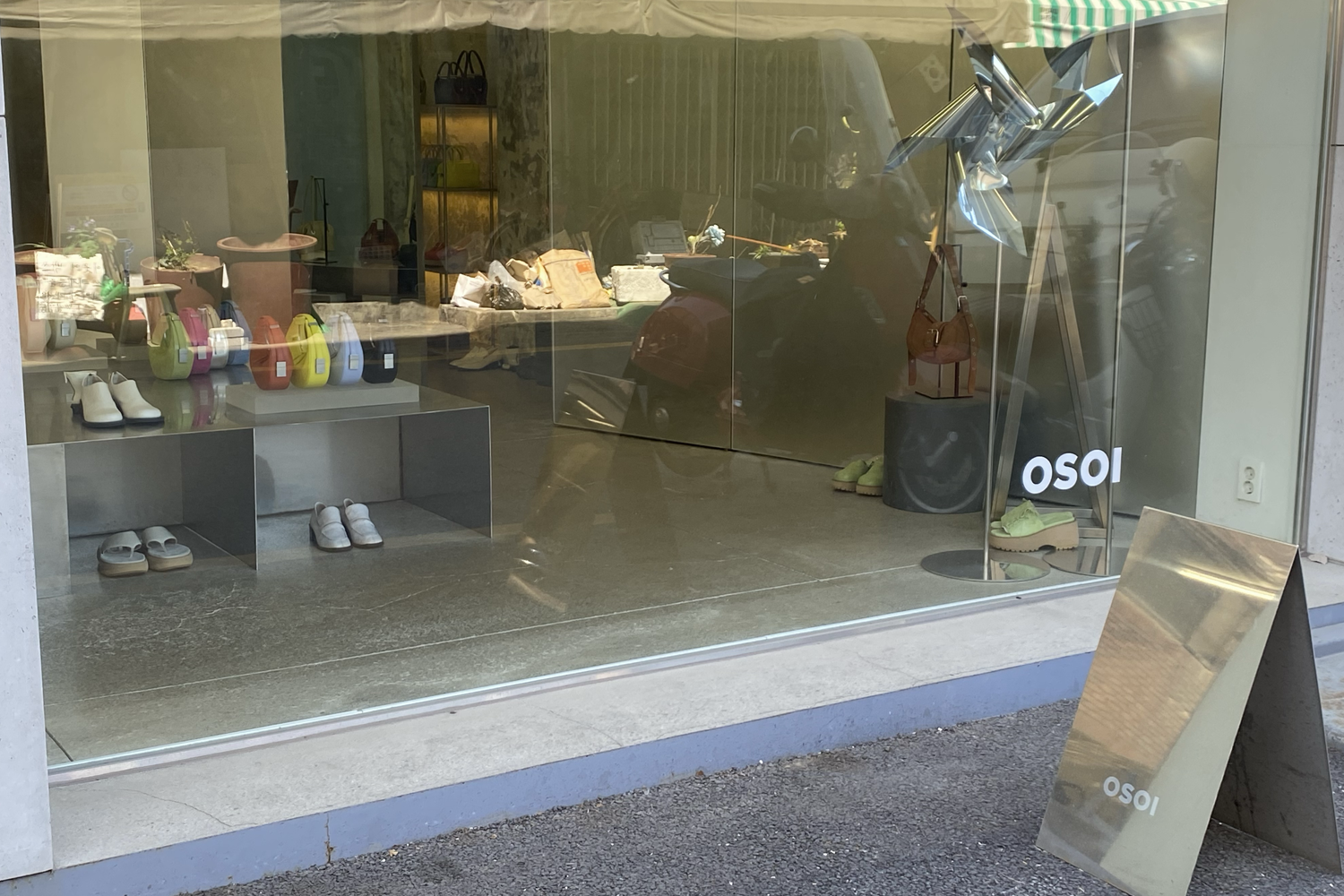 大片的落地窗让人在店外就被这些色彩鲜艳的包包给吸引!
