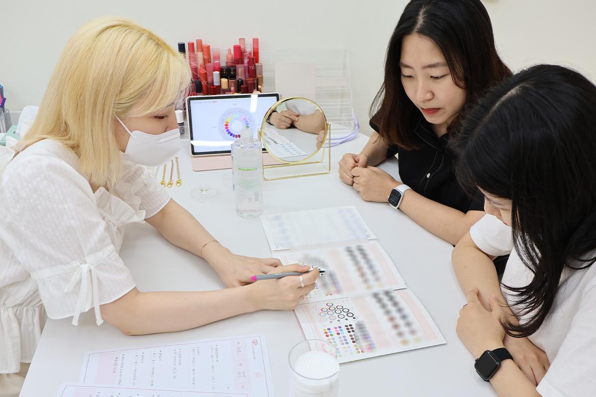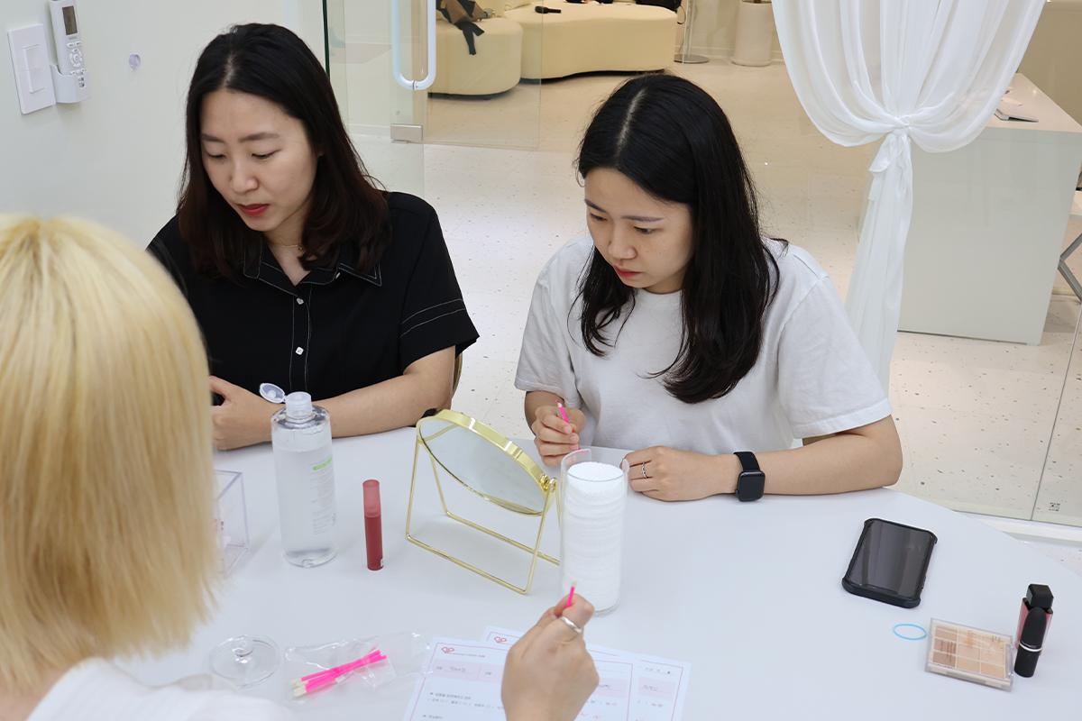 最后,要检测书上填写结果,并对这部分做了一些说明让各位带走时,可以继续参考。小编也询问了关于染发颜色、眼影、口红、粉底液、底妆等所有与化妆相关的问题,DAMPPEUM的老师都非常亲切地回答。