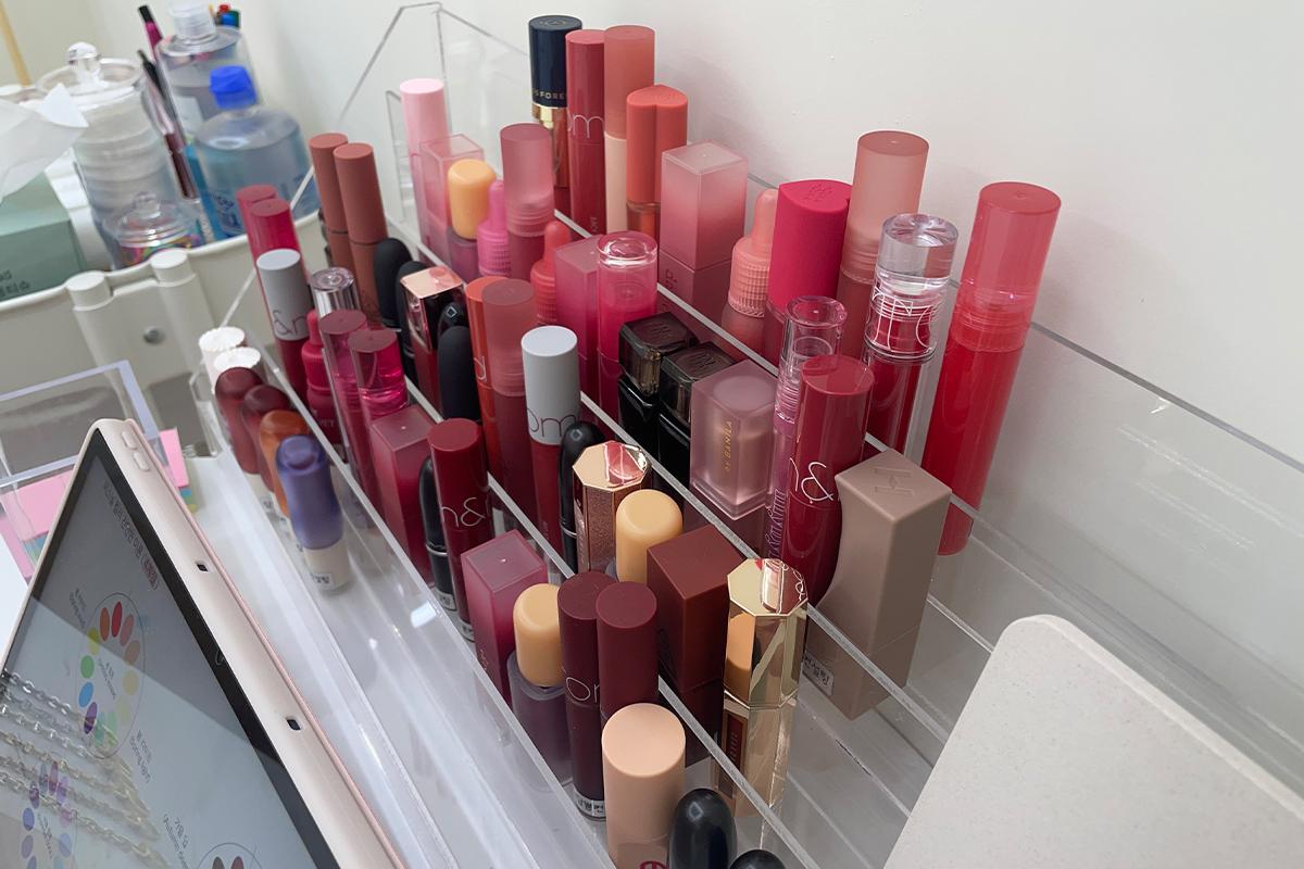 桌子最右边放了超多口红,小编心想,等等应该会从这些色号中找到适合我们的颜色吧?
