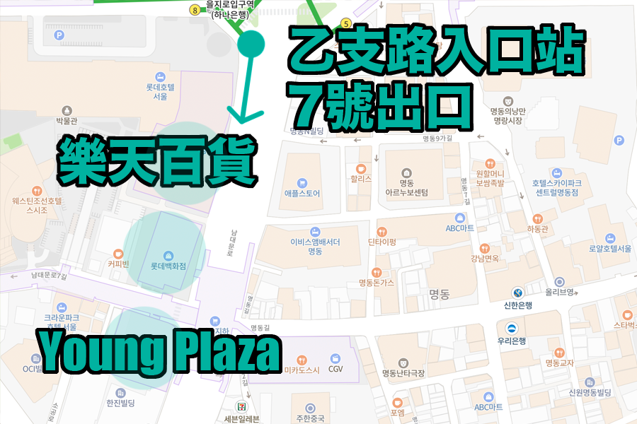 - 交通:首尔地铁2号线乙支路入口站(을지로입구역)7号出口出来前方即是乐天百货。