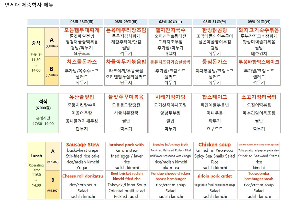如果是住宿舍或是读语学堂的朋友,SK宿舍的附近还有一栋叫做 제중/ 법현학사 的宿舍,这栋的一楼也有学餐。