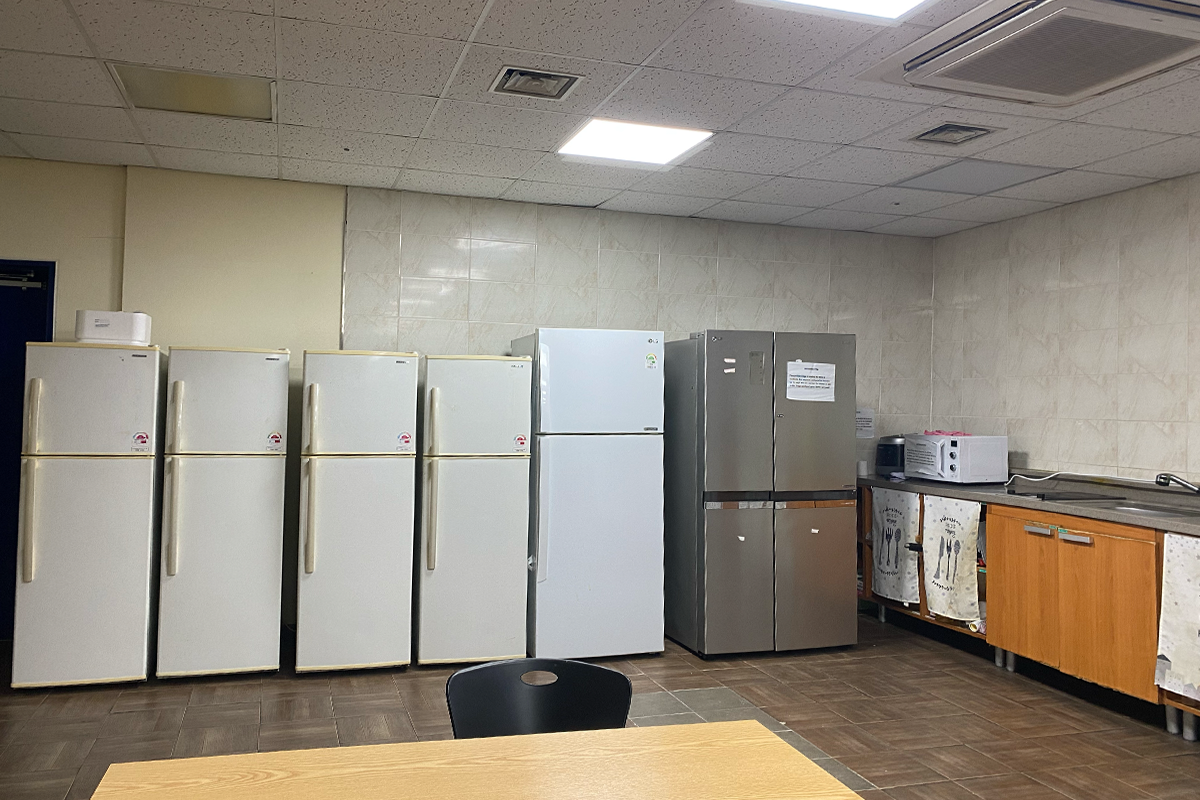 因此食物要拿到公用厨房的冰箱来放