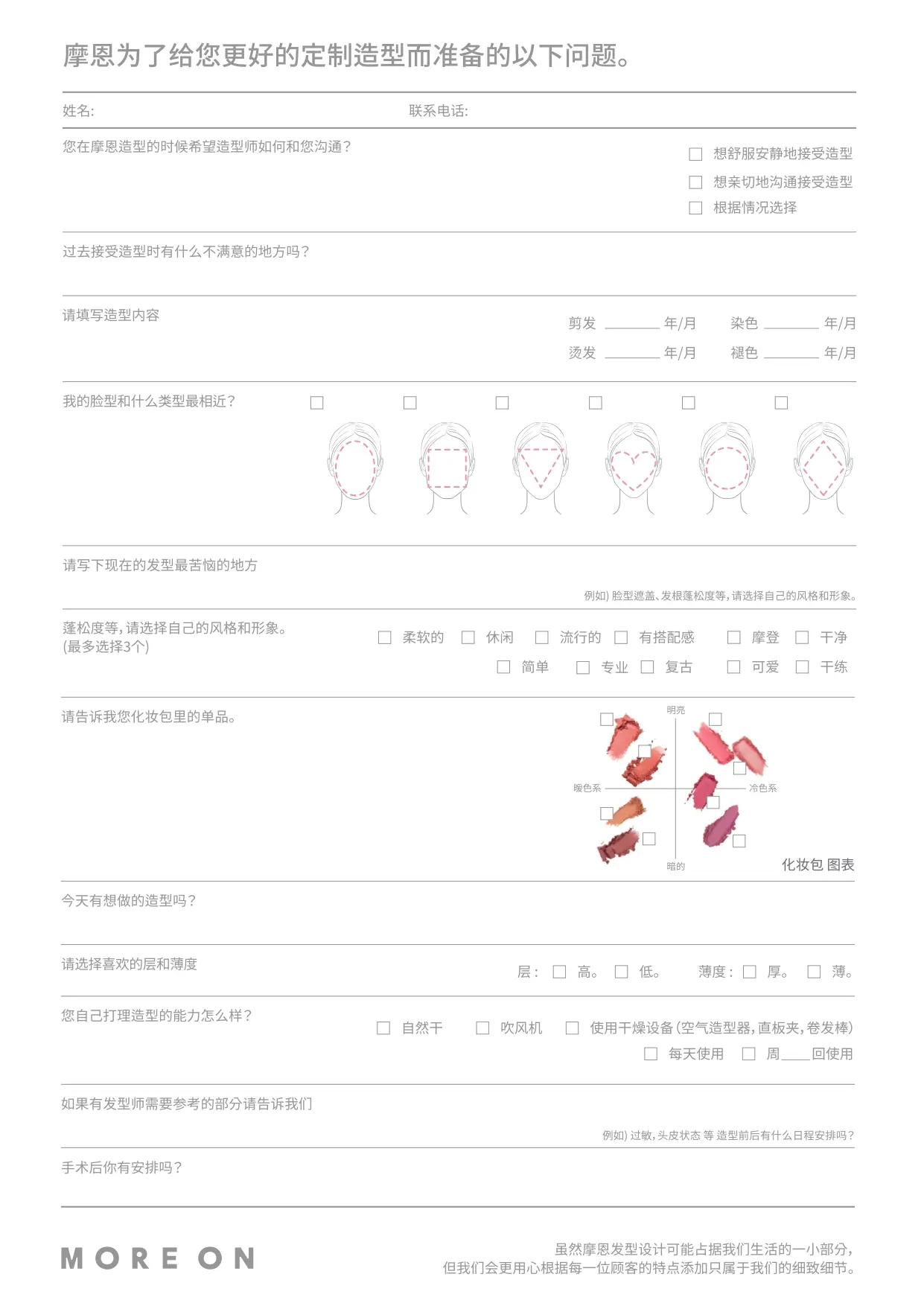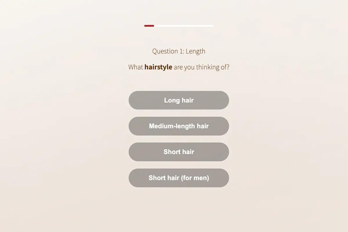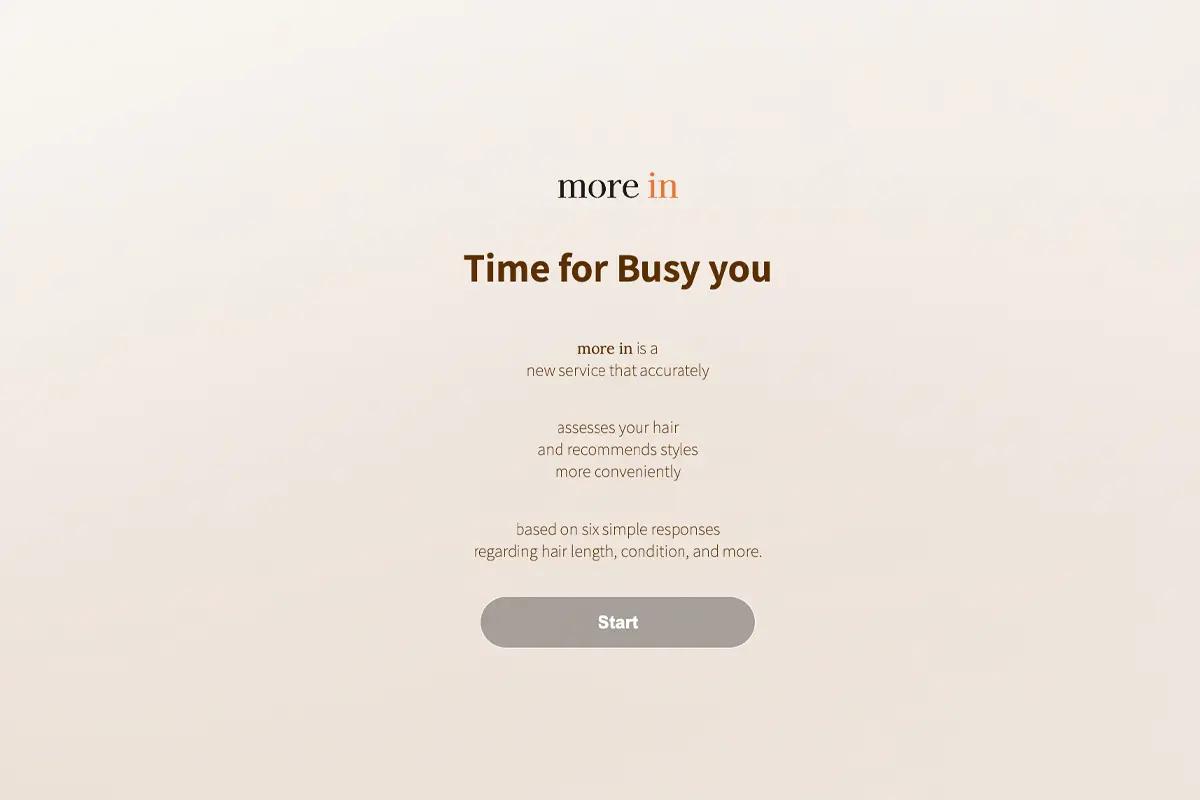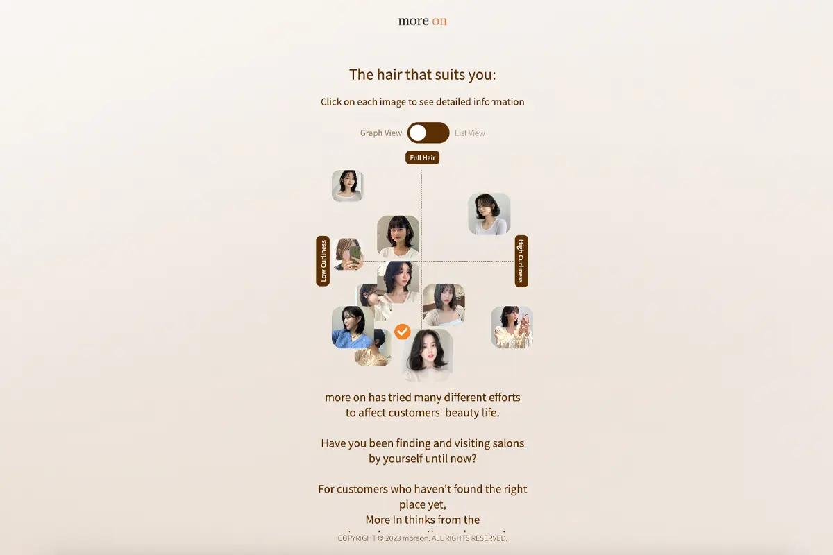 more on hair提供线上的诊断服务「more in service」,透过几个简单问题,确认你的头发长度、发量、发质等等,推荐最适合你的发型。
