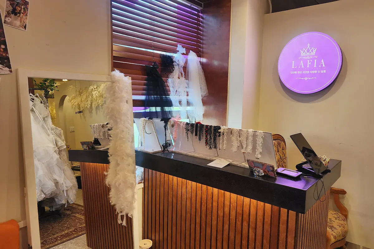 LAFIA Studio工作室的规模相当大,除了提供礼服租借,还有各式皇冠、耳环、项链和花等配件,记得挑选几款配戴来拍照喔。