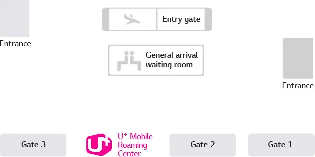 • 位置:国际线1楼2至3号出口LG U+柜台(06:00至22:00)
