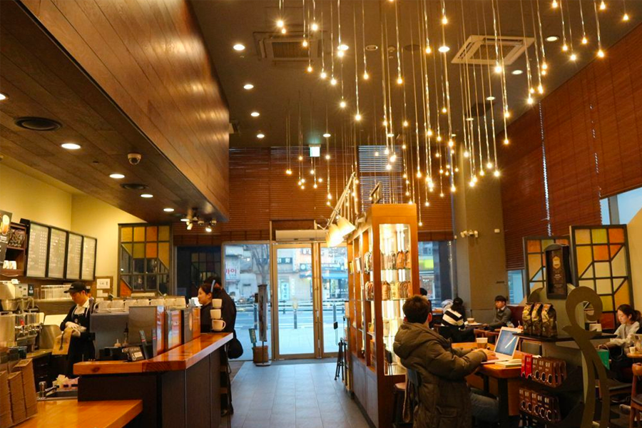 内部挂著如星空一般闪耀的灯饰,让人走进星巴克忠正路站店时,都会忍不住多看几眼。加上整体气氛营造得很好,人气也是首尔市区星巴克中非常有名的。