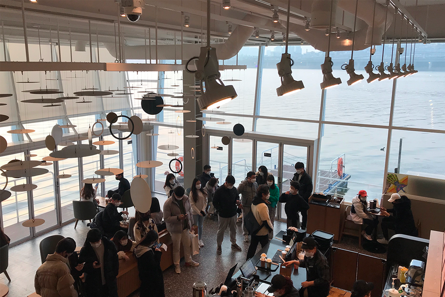 进到店内后,也会被超大的空间吸引,紧邻汉江的美丽湖面,景观非常好,也难怪每到周末假日,星巴克Seoul Wave Art Center店都是一位难求。