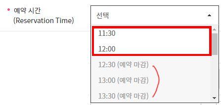 而如果时间旁边有显示예약마감(预订额满) 的话,就代表那个时间已经无法预订啰~