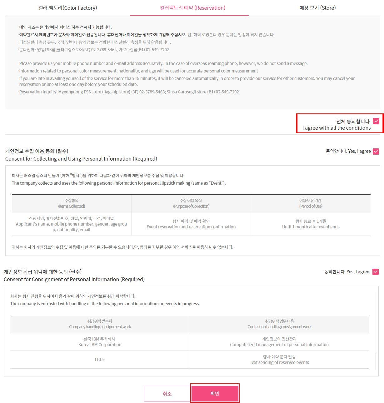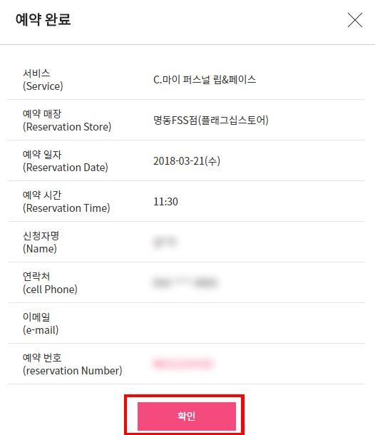 • 预约查询:Myeongdong FSS店(旗舰店)(3F)02-3789-5463;Sinsa Garosugil店(B1)02-549-7202