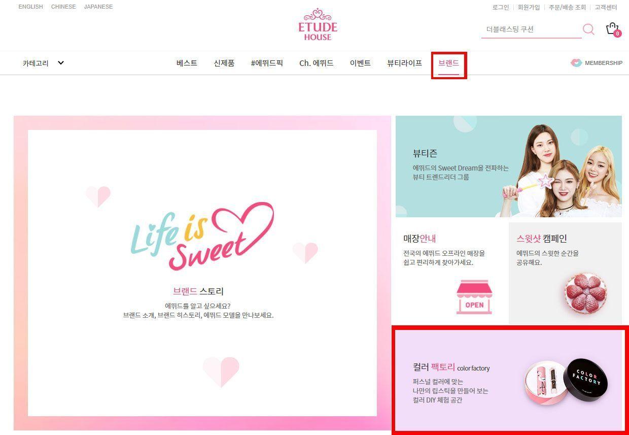 1. 首先先进入韩国ETUDE官网 (https://www.etudehouse.com/kr/ko/main.do)