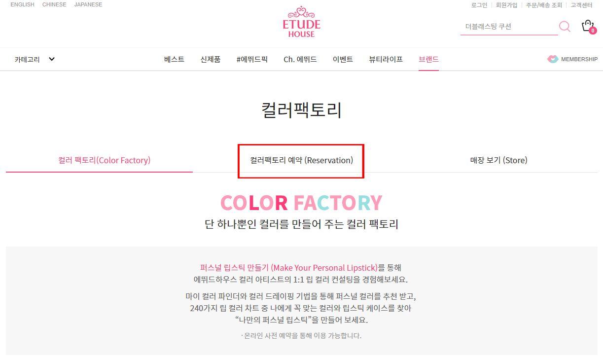 3. 点选「预约Color Factory(컬러팩토리 예약)」