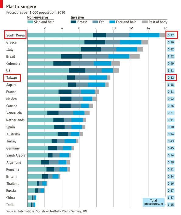 其实韩国整形的人虽然比例上是有比台湾还要高一些