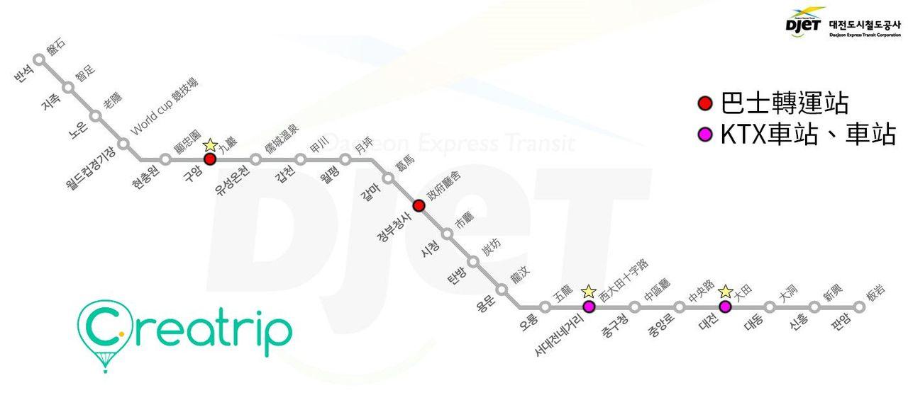 大站 | 首尔站(搭乘KTX通往大田、大邱、釜山之主要出发点) |