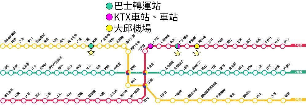 火车站 | 沙上站、华明站、乐民站、市厅站、釜田站、Centum City站 |